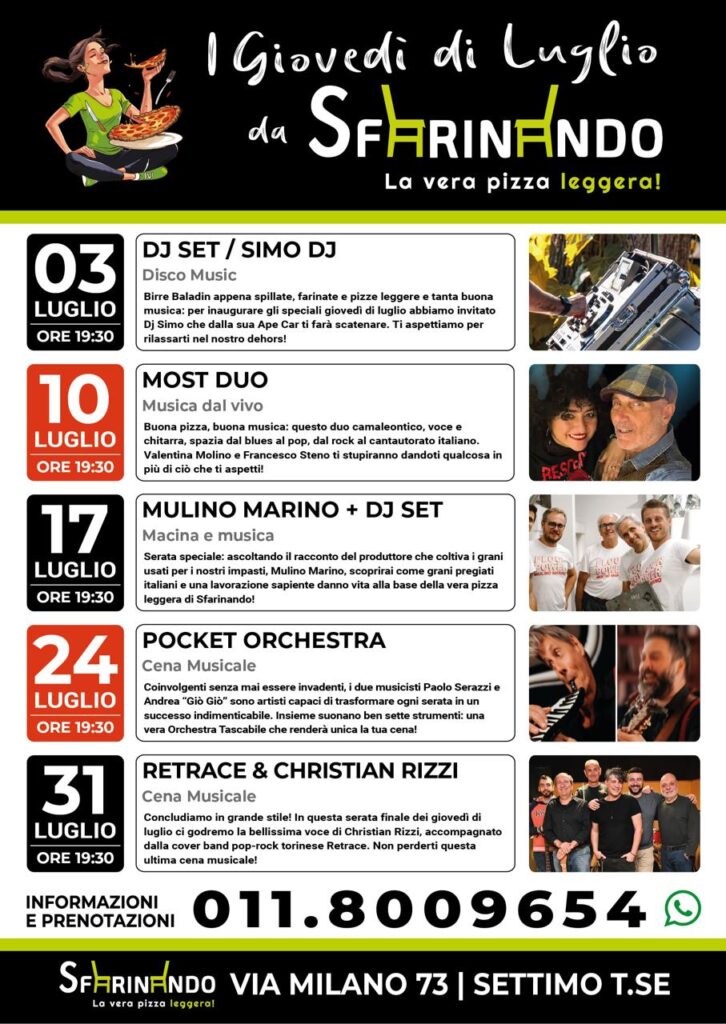 I GIOVEDÌ DI LUGLIO DA SFARINANDO: MUSICA, PIZZA E BUONA ENERGIA